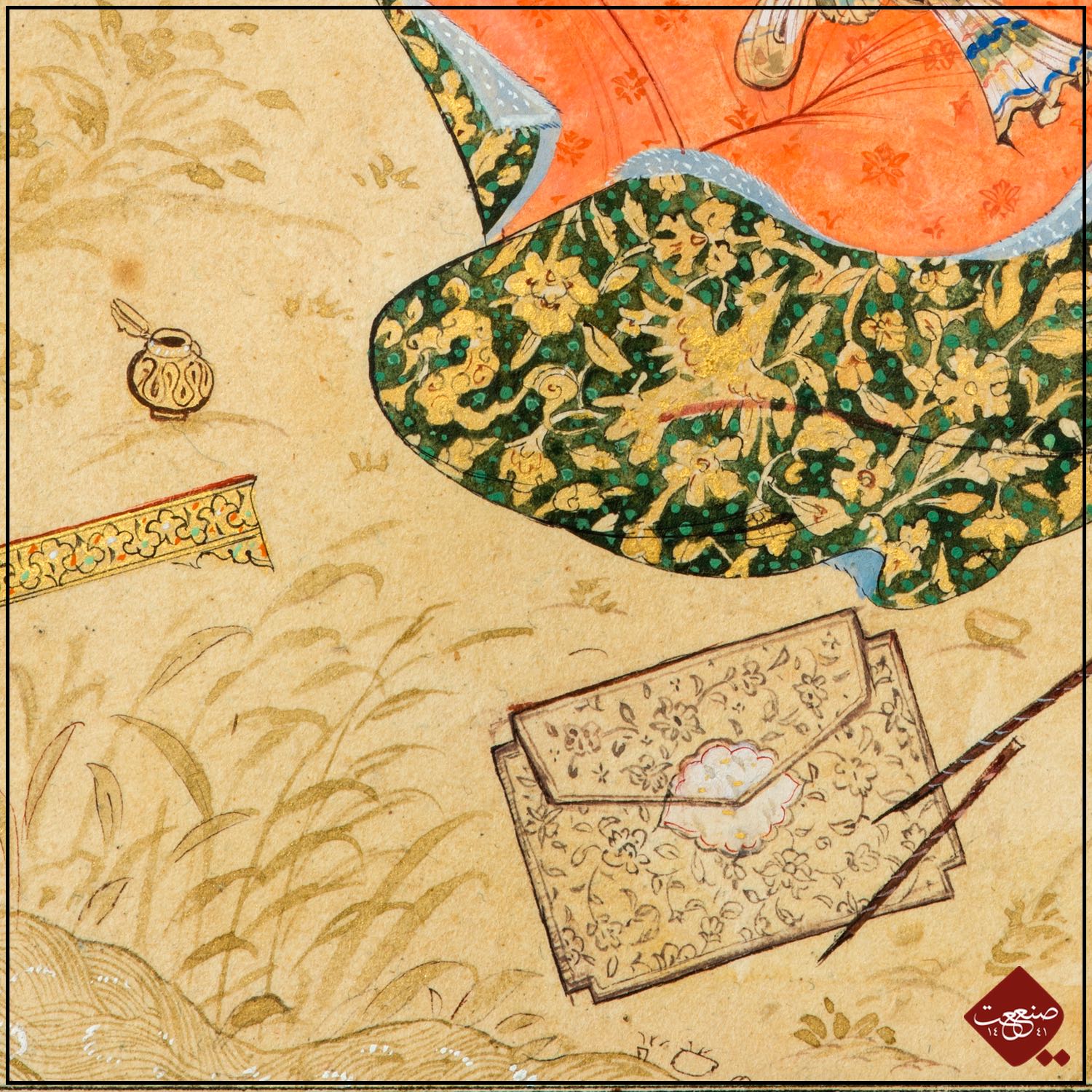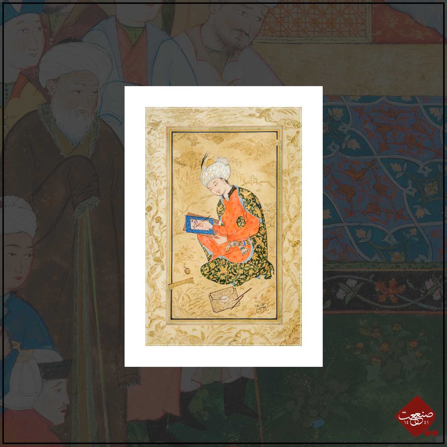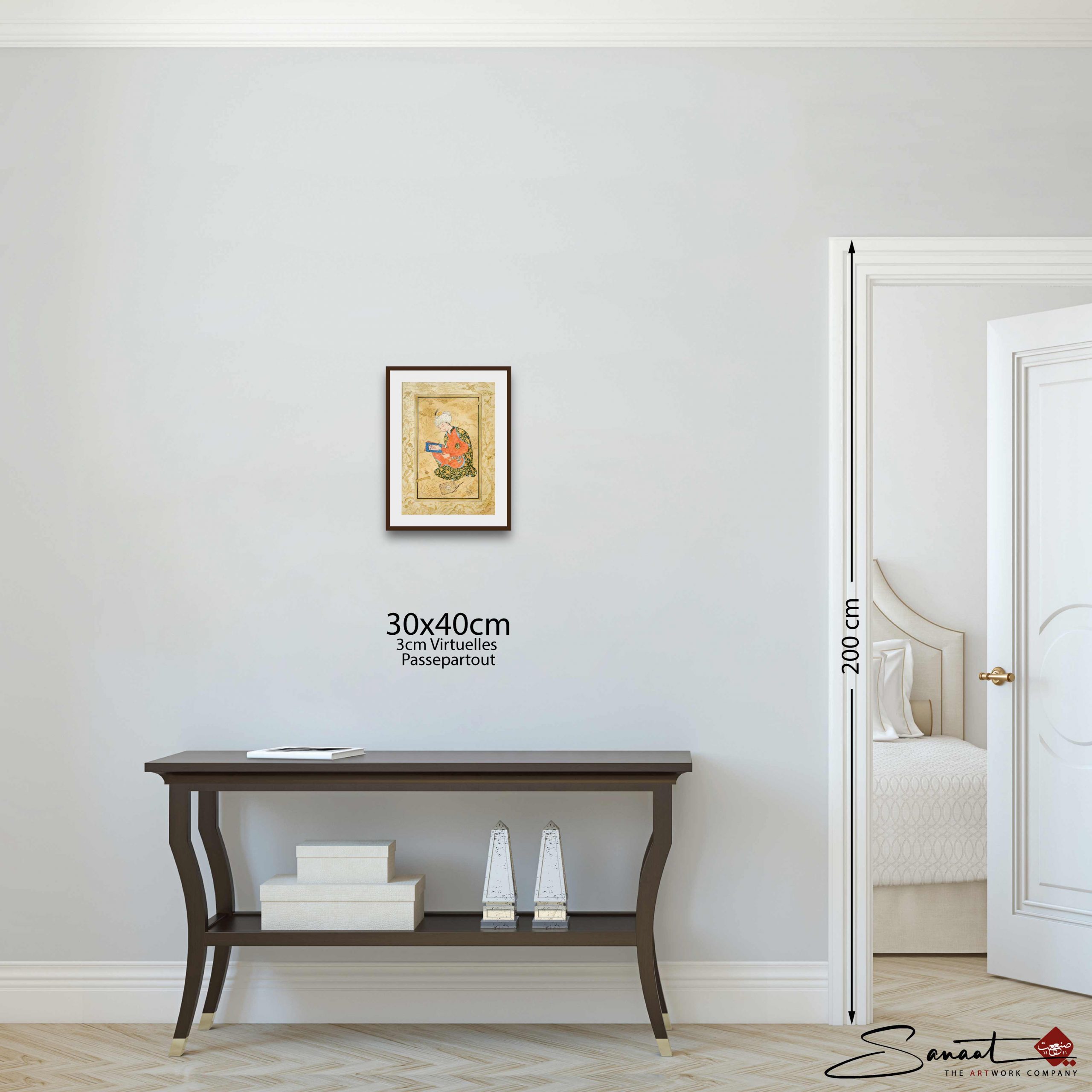 Hier inszeniert der Künstler Jahongir, nach dem Motto „weniger ist mehr“ einen Kalligraphie-Künstler bei seiner Arbeit. In den kleinsten Details zeigt Jahongir sein Können und schafft ein farbenharmonisches Kunstwerk.