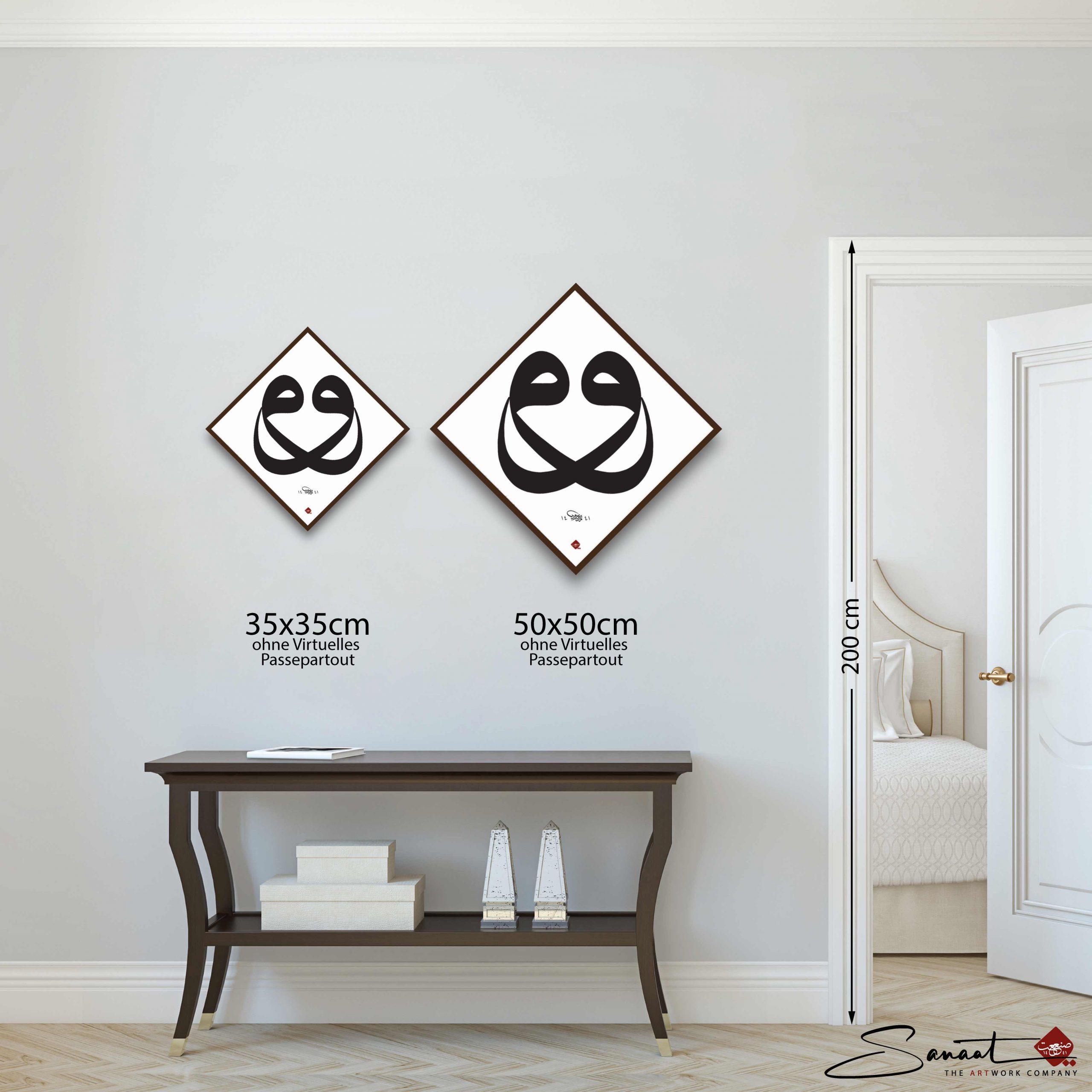 Künstlerisches Spiel aus zwei arabischen Buchstaben mit Sanaat-Stempel.