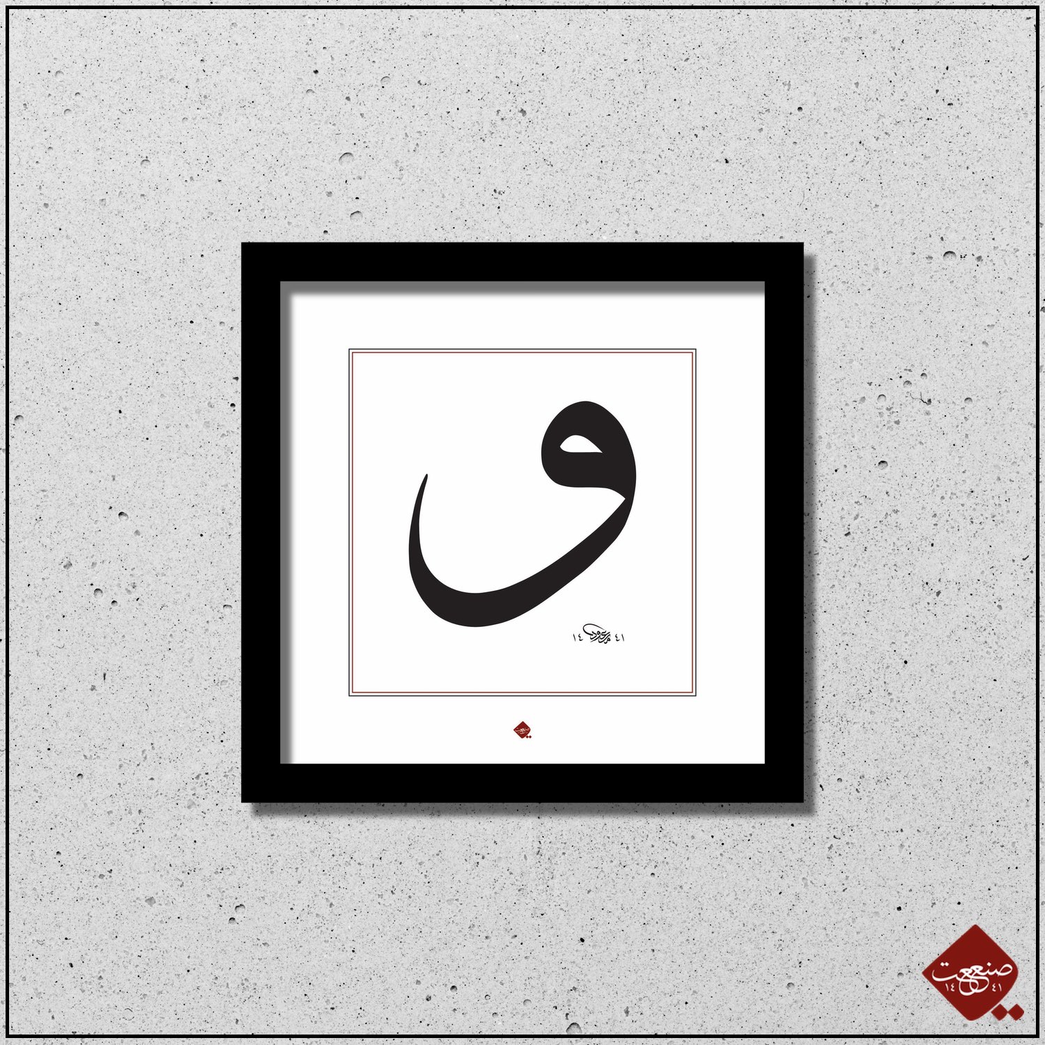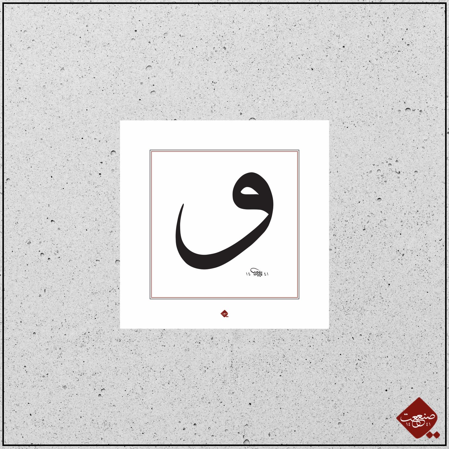 Klassische Darstellung des arabischen Buchstaben Vav mit originalem Sanaat-Stempel.