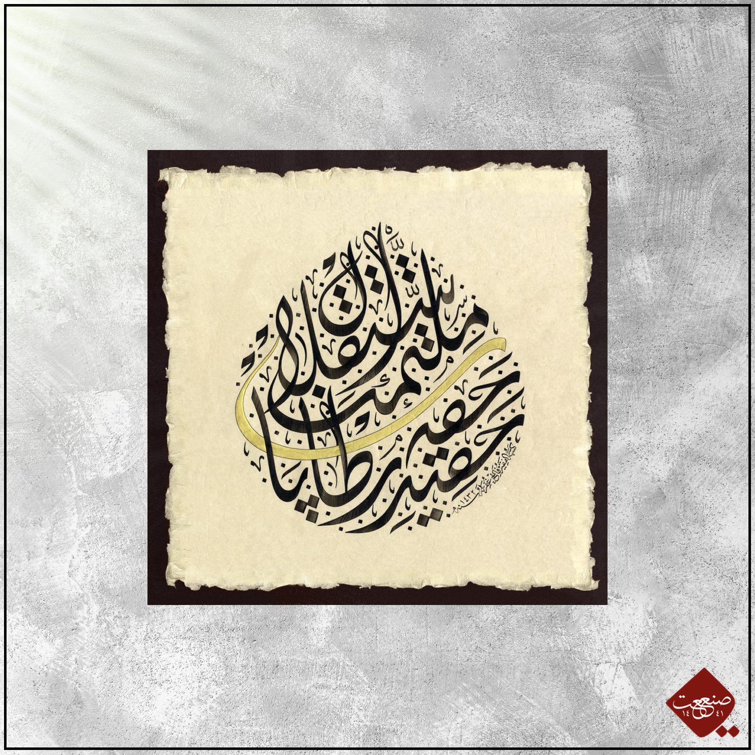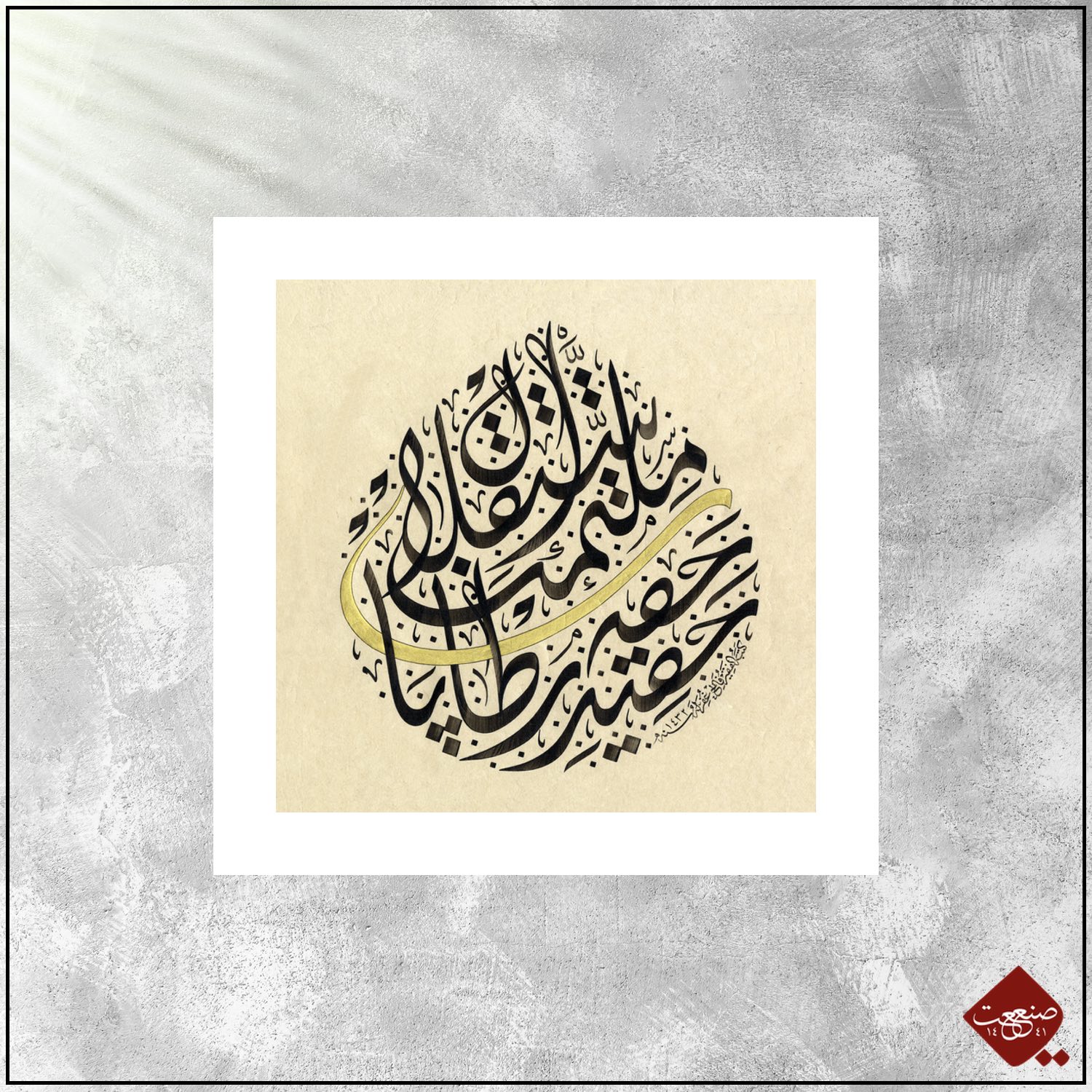 Hier inszeniert der Meisterkalligraph Özkafa einen Ausschnitt aus den Versen des türkischen Beifreiungsmarsches (türk. İstiklâl Marşı), umhüllt von einer goldenen Schleife in der klassischen Form eines Tropfens. Der Tropfen steht symbolisch für Wasser, das wiederum das Elixier des Lebens ist. Mehmet Akif Ersoy, der Schreiber der dieser Hymne, verfasste die Erstschrift natürlich mit arabischen Buchstaben in osmanisch.