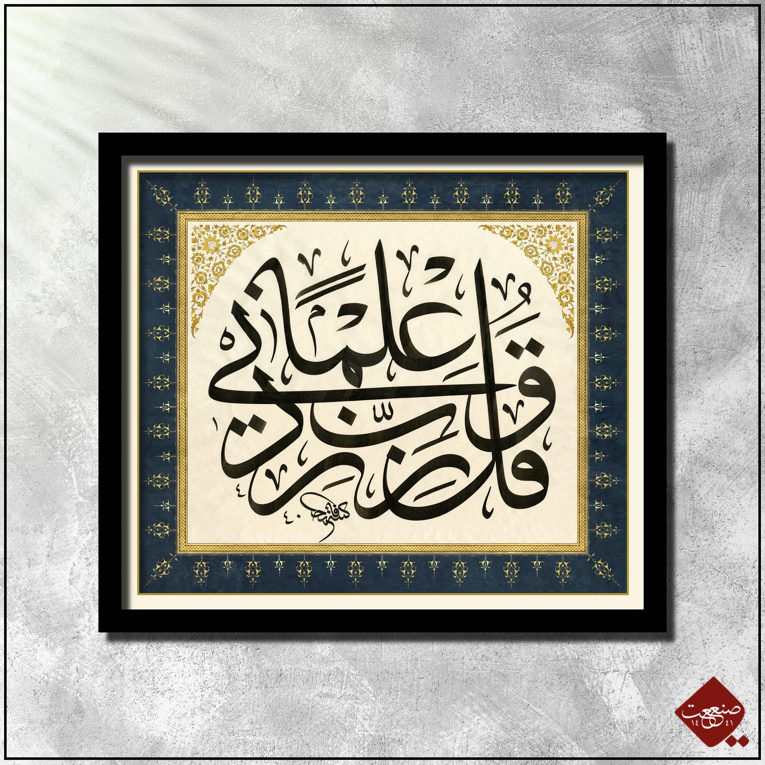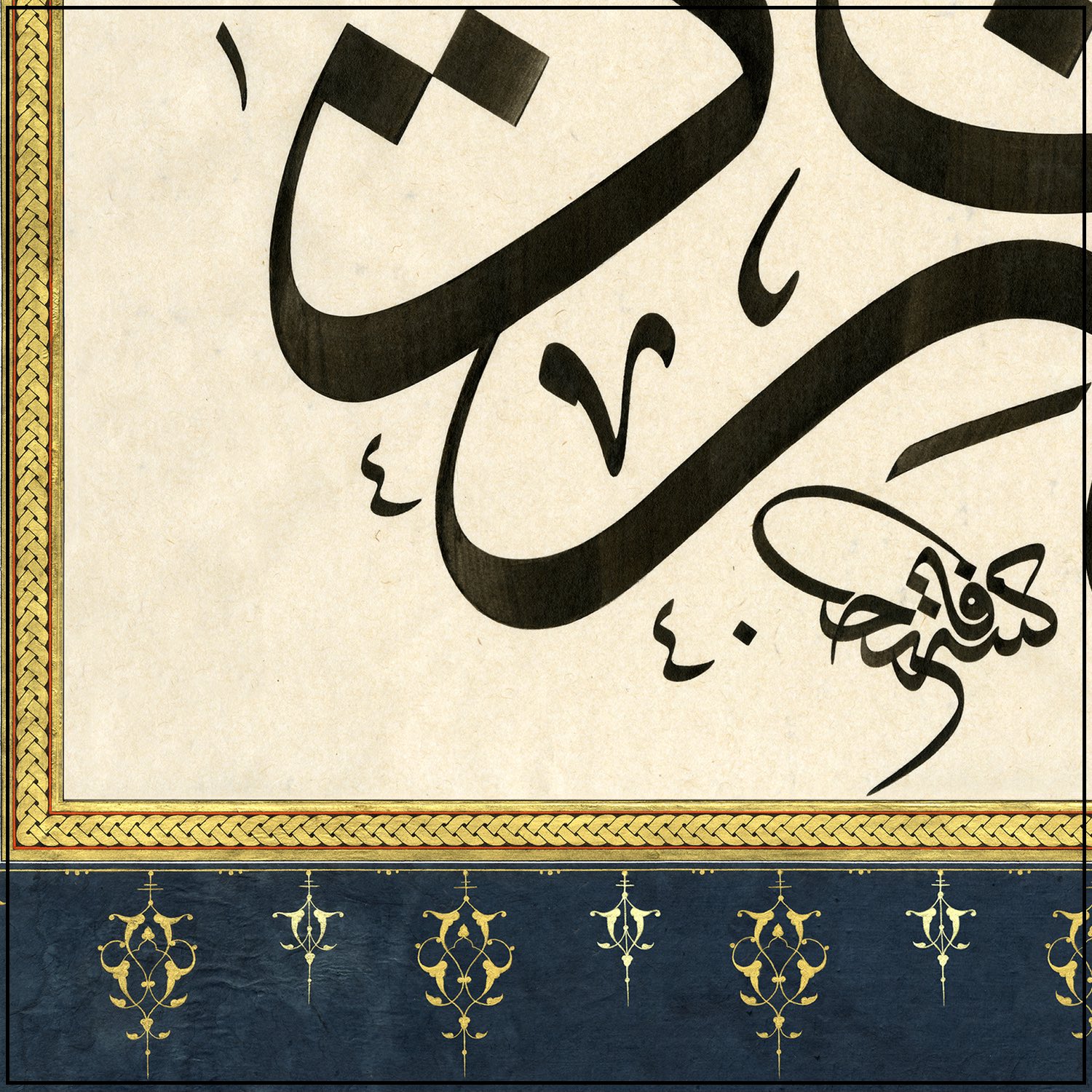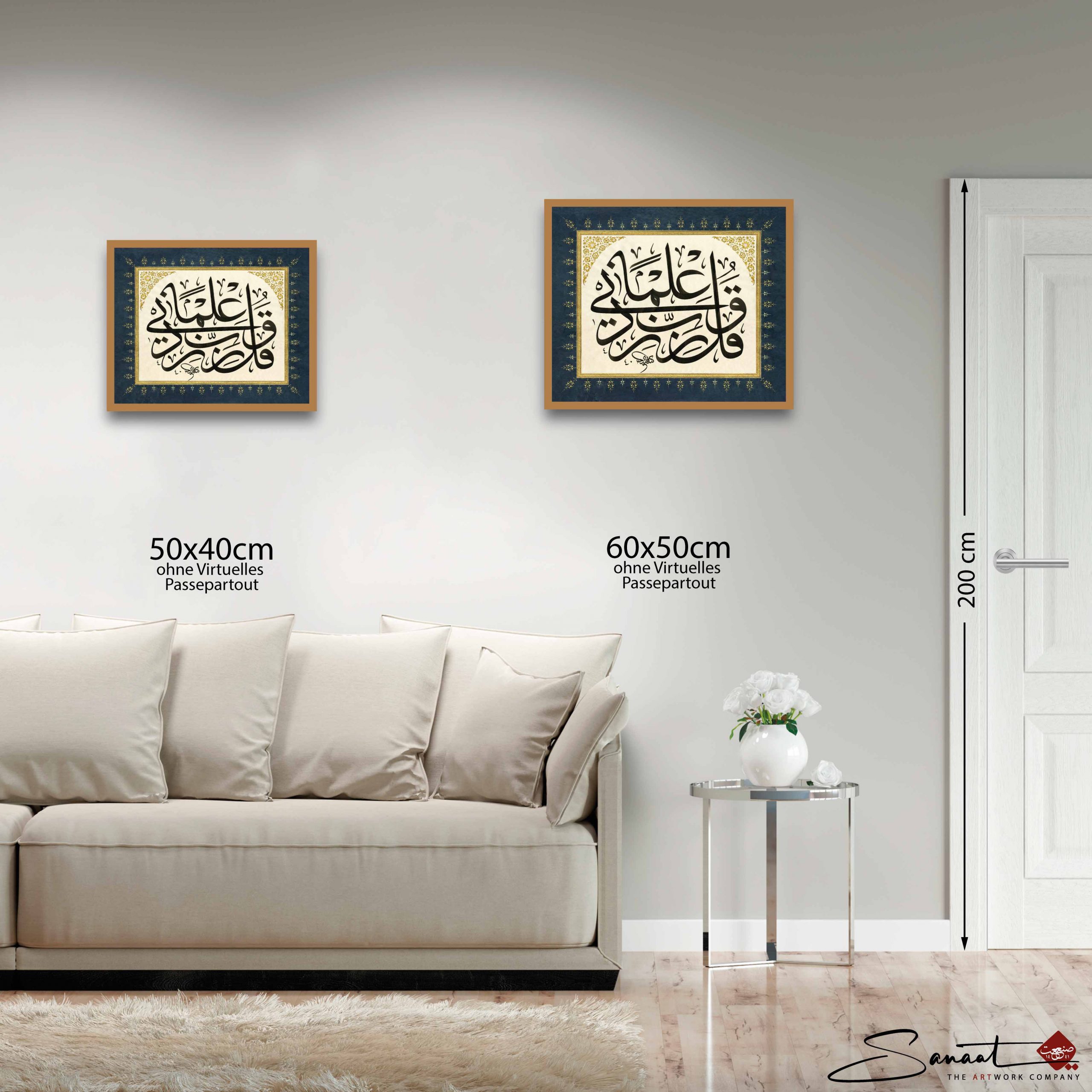 In diesem Kunstwerk steht der letzte Abschnitt aus der Sure Tā-Hā Vers 114. Der Schriftzug beinhaltet folgendes Gebet: „Und sprich: Mein Herr, gib mir mehr Wissen.“